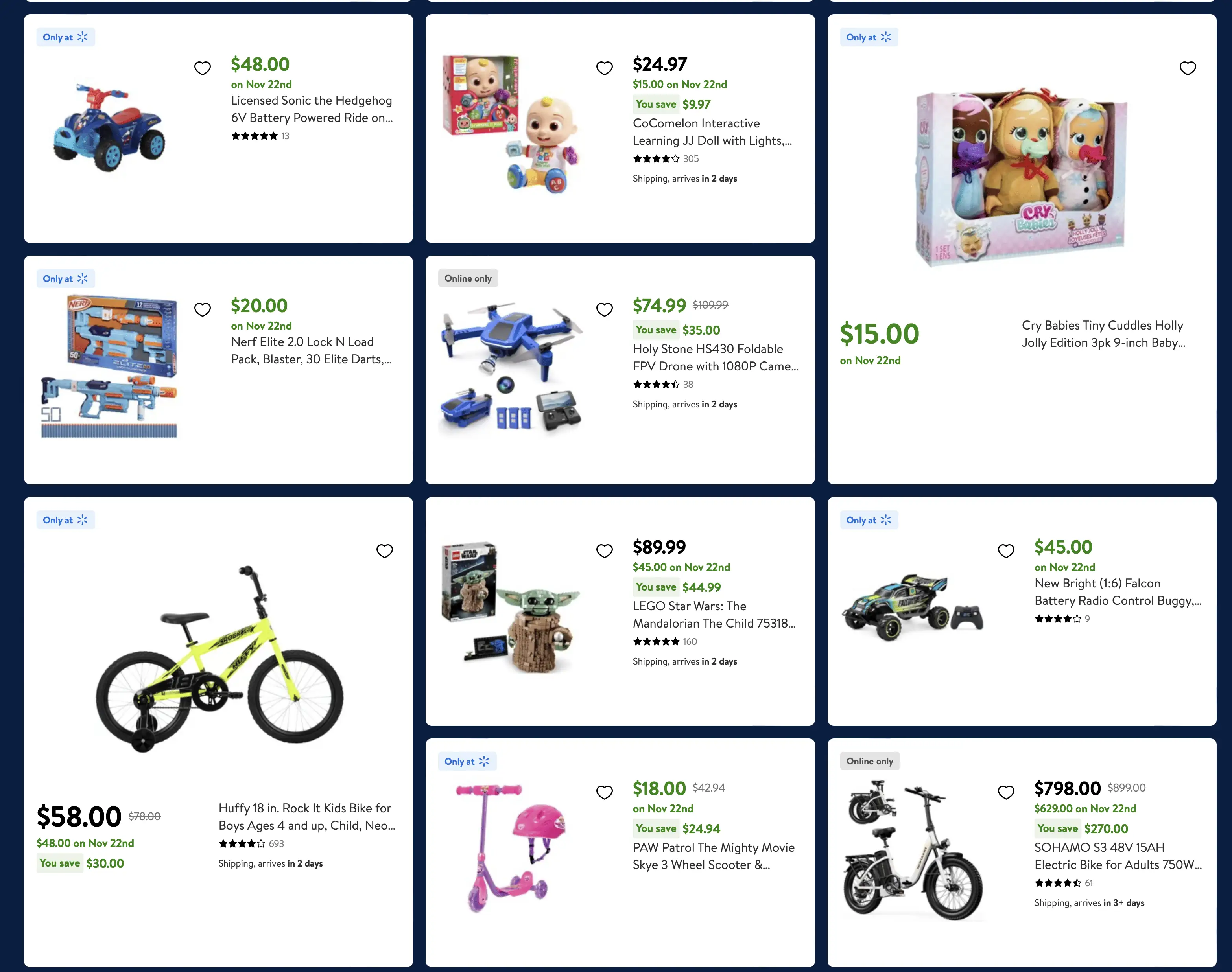 Our Favorite Deals on This Page of The Walmart Black Friday Ad: The 13th page of Walmart’s 2023 Black Friday ad features some great buys on toys. You can score a sweet Holy Stone Foldable Drone with 1080p camera for $35 off @ $74.99 this Black Friday. You can also grab a SOHAMO Electric Bike for $270 off during Black Friday, which would could be the perfect gift for your husband this holiday season! We still have many more deals coming up on the remaining 69 pages of the Walmart Black Friday ad! Come on, let’s head over to the next page of Walmart’s amazing Black Friday ad together right now!