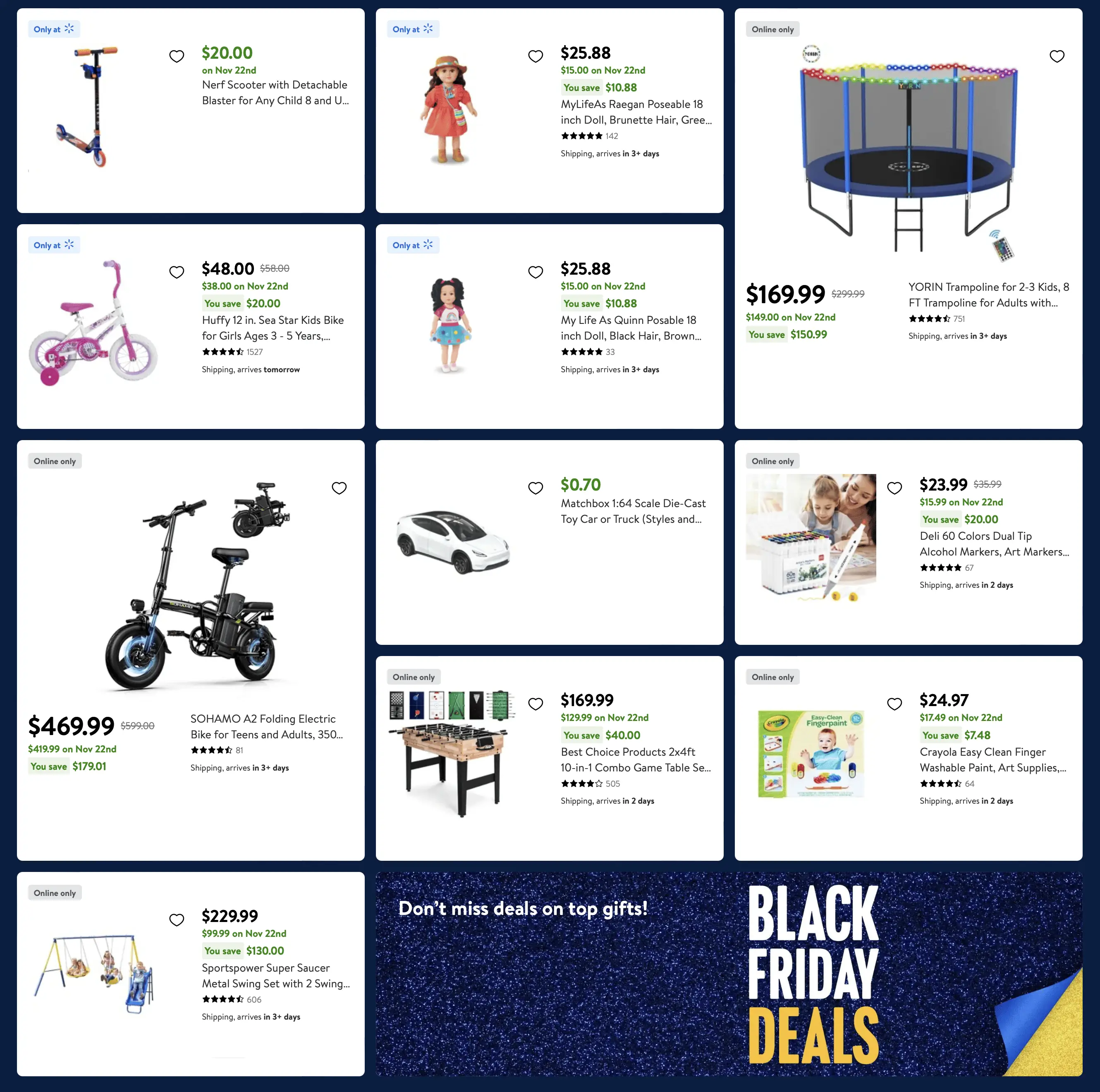 Our Favorite Deals on This Page of The Walmart Black Friday Ad: The 15th page of Walmart’s 2023 Black Friday ad features still more amazing Black Friday deals for your little ones! Take a moment to think about how much fun your little ones will have jumping on that Trampoline (maybe even for hours on end if you are lucky!) For $149 on Black Friday, you are getting it for nearly half off! Wow what a sweet Black Friday score this could be for your household. That Trampoline also comes with LED lights…just imagine all the exercise your children could get on this thing! We still have so many more sweet deals coming up on the remaining 67 pages of the Walmart Black Friday ad! Come on, let’s turn to the next page of Walmart’s amazing Black Friday ad together, shall we?!