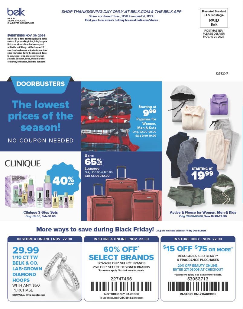 Deals go live Nov. 22nd and run through Nov. 30th, 2024 - Belk Black Friday Main Event:Â
