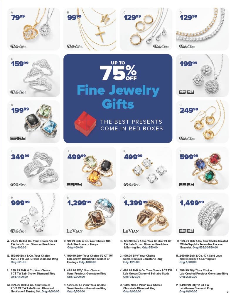 Page 3 of the Belk Black Friday ad is dedicated to some beautiful jewelry that can be had for up to 75% off – are you kidding – yes please! What a great gift for your special someone this holiday season, sure to score you loads of brownie points! Keep reading, we have so much more to show you from the 2024 Belk Black Friday Ad!