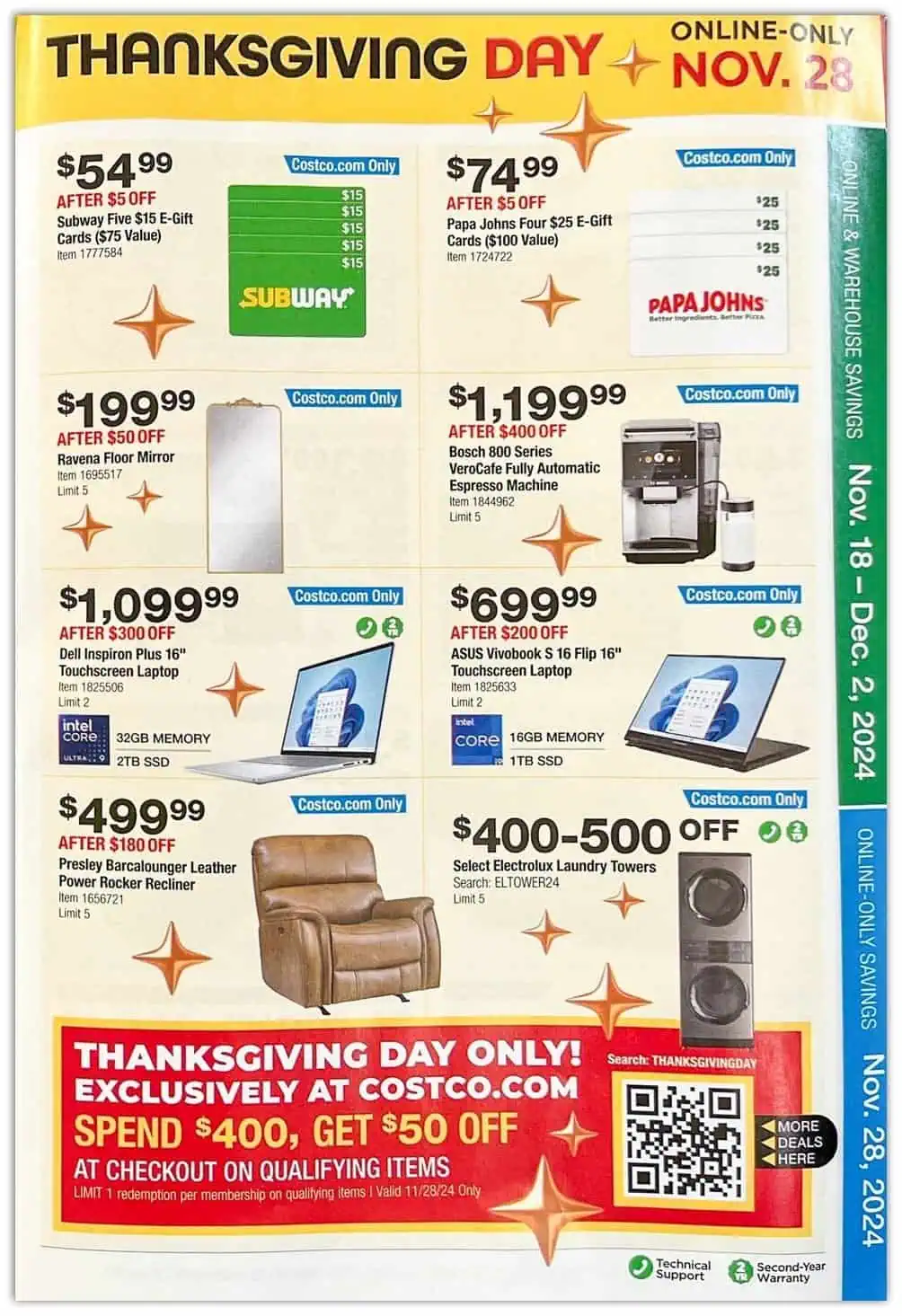 Deals go live Nov. 18th and run through Dec. 2nd ,2024. - Costco Thanksgiving Day Event: